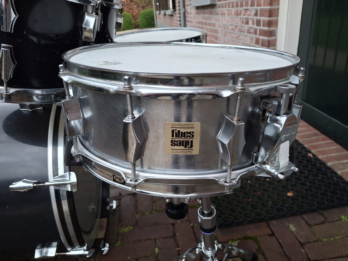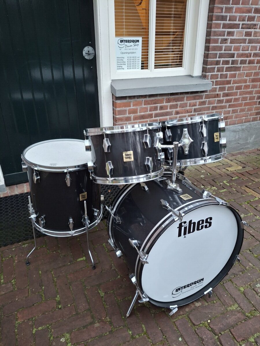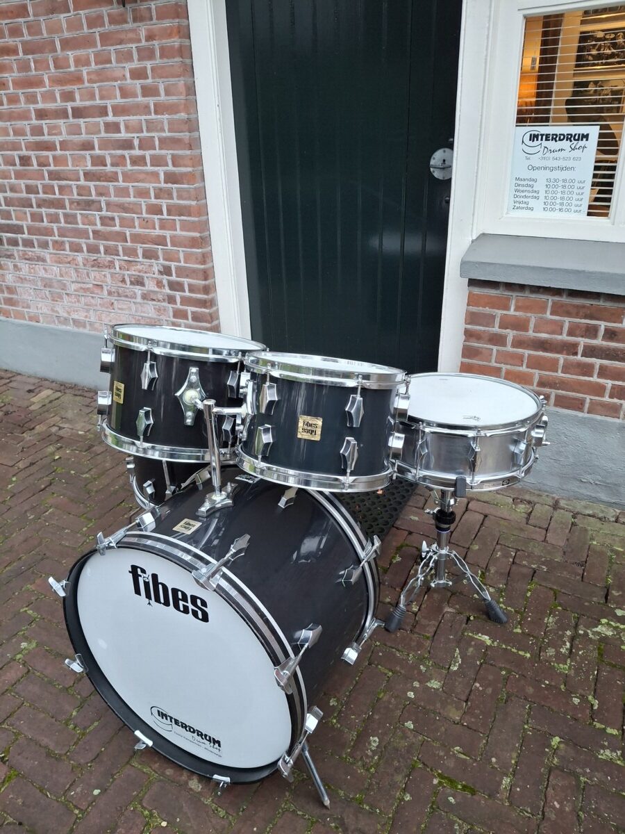 Bassdrum 22×14 Tomtoms 12×8 – 13×9 Floortom 16×16 en Snaredrum 14×5½ en de Fibes Tomtom Holder